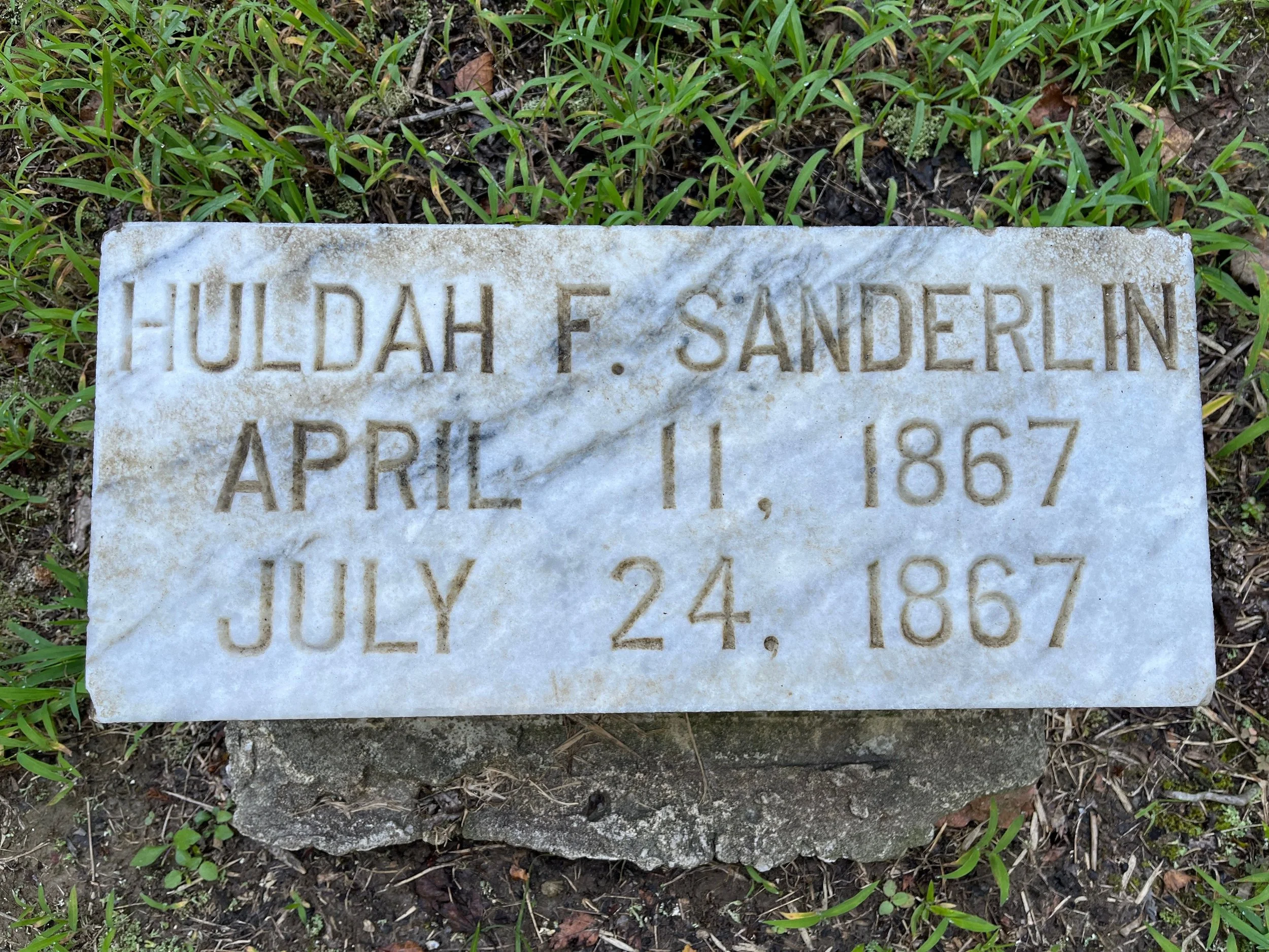 [Photo: Baby Hulda Sanderlin’s Gravestone 1867]